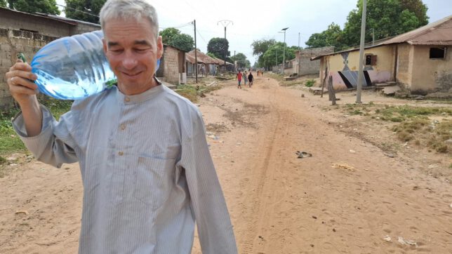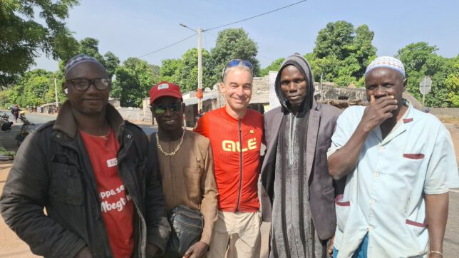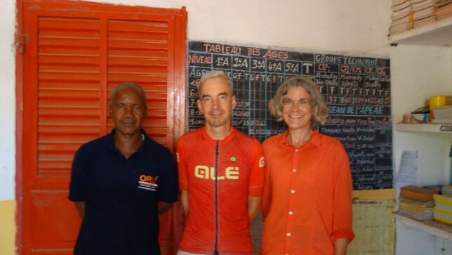 Schließlich verkündete der Direktor, dass wir selbstverständlich hier im Klassenzimmer unser Zelt aufstellen dürften. Er freue sich, uns Herberge anzubieten. Denn: „On est ensemble.“ Für diesen Satz, der uns hier in Westafrika so oft begegnet und uns jedes Mal tief bewegt hat, haben wir bis heute keine passende Übersetzung gefunden. „Man ist gemeinsam“ gibt nicht die Tiefe der Bedeutung wieder. Dieser Satz drückt sowohl aus: „Wir lassen dich nicht allein“ als auch „Wir stehen das gemeinsam durch“ und „Gemeinsam sind wir besser“. Wir kennen diesen Satz auch schon auf Wolof: Kon en goto. Wir haben ihn immer dann gehört, wenn wir Hilfe erhielten und uns bedankten. Dann kam dieser Satz, als sei es eine Erklärung dafür, dass es ja auch sinnvoll und ganz vernünftig sei, sich gegenseitig zu helfen – als würde man sich jedes Mal, wenn man jemandem hilft, erinnern: „On est ensemble“. Dieser Satz, der eher eine Lebenshaltung ist, fängt sehr gut ein, was wir hier erleben und was uns bei aller Strapazen immer wieder auf wunderbare Weise Energie gibt. Denn es ist nicht nur ein Spruch, es ist zu unserer Lebenserfahrung hier in Westafrika geworden: „On est ensemble“.
