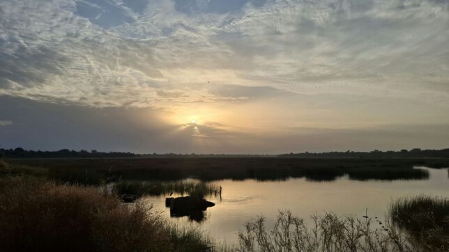 Plötzlich bewegt sich das hohe Gras unmittelbar neben uns. Wir erschrecken und springen einen Schritt zur Seite. Da bewegt sich etwas Großes. Das ist kein Vogel, auch kein kleiner Nager. Es ist keine zwei Meter entfernt von uns, und wir können dennoch nichts erkennen – so dicht ist das Savannengras. Ist es eine große Schlange? Ein Waran? Gestern erst hat ein eineinhalb Meter langer Waran vor uns gemächlich die Straße überquert. Ist es ein Affe? Ein Krokodil? Alle diese Tiere haben wir schon vom Sattel aus beobachtet.
