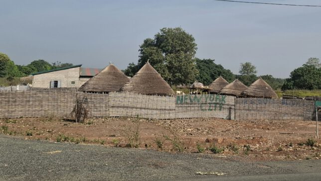 Als wir in dem mickrigen Straßendorf ankommen, fahren wir dreimal an der Einfahrt zum „Safari-Camp“ vorbei. Das ist auch kein Wunder, denn es existiert nicht mehr. Was sich jetzt entfaltet, ist eine Beispielgeschichte für afrikanischen Alltag, wie wir ihn oft erleben. Gerade noch freuten wir uns auf die erholsame Unterbrechung unserer Straßenexistenz. Wir dachten an Dusche und ein klimatisiertes Zimmer, ein Bett und eine Tür, die wir hinter uns zumachen können. Eine kurze Unterbrechung unseres teils sehr anstrengenden Ausgesetztseins. Jetzt spähen wir durch den Spalt des großen Metalltors, das mit einem dicken Vorhängeschloss unseren Plänen im Weg steht. Innerhalb von Sekunden sind unsere Hoffnungen auf Erholung zerstört. Wir sehen weit hinten von wuchernden Ranken versteckte Gebäude. Das ganze Gelände sieht aus, als wäre es vor Jahren schon aufgegeben worden. Hier gibt es keine Übernachtung für uns.