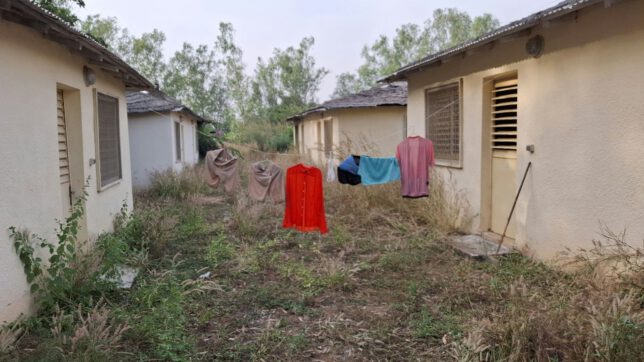 So stehen wir noch in der Hitze vor dem verschlossenen Tor, als ein Landarbeiter in ziemlich dreckiger Arbeitskleidung vorbeikommt. Um seinen Körper hat er rund 20 Meter dicken Gartenschlauch geschlungen. Sein Gang ist bestimmt durch die übergroßen, schlingernden Gummistiefel. Er reicht uns die Hand zur Begrüßung – wie geht es so? Gut. Und Ihnen? … Wir kennen das. Er lächelt gewinnend. Dann geht er an uns vorbei und schließt das Tor auf. Das Wundern haben wir erst richtig hier in Afrika gelernt. Es ist ein amüsiertes Wundern. Ein Wundern, das uns jedes Mal neu sagt: „Du hast keine Ahnung – komm nach Afrika und lerne.“ Wir folgen ihm, die Räder durch tiefes Unkraut und hohes Gras schiebend. Das Camp mit einzelnen Touri-Rundhütten, einem leeren, staubigen Pool und überwachsenen Gebäuden durchquerend. Kurz warnt er uns mit einem Handzeichen, und dann springt aus einer dunklen Ecke ein Kettenhund bellend und Zähne fletschend hervor. Ein zweiter Hund, etwas lahmer und älter, ist nicht angekettet und humpelt auf uns zu. Der Landarbeiter sagt etwas – es könnte heißen: „Der beißt nicht.“ Was er wirklich gesagt hat, weiß ich nicht. Jedenfalls beißt der Hund tatsächlich nicht. Wir stehen jetzt vor einem längeren Wohngebäude, und der Mann schiebt eine Tür auf. Er lächelt und sagt: „Es gibt keinen Strom, und ein Moskitonetz hat es auch nicht, aber ich kann das Wasser für euch anstellen.“