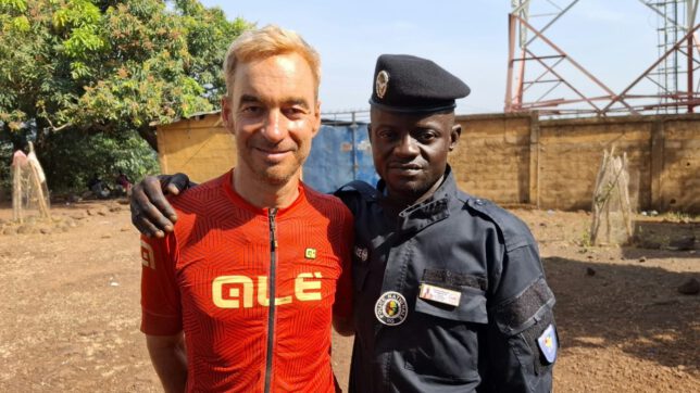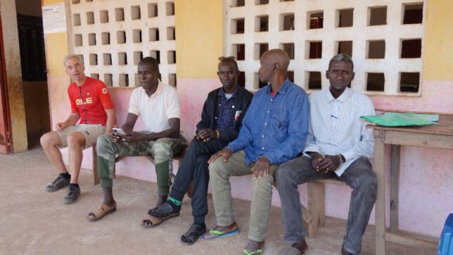 Oft dürfen wir unser Anliegen selbst vortragen und werden dann auch mal mit so heiklen Fragen konfrontiert, wie man denn in unserer Heimat in so einem Fall entscheiden würde. Eine kluge Frage, die ich dem Subpräfekten von Sikhourou in folgenden diplomatischen Worten beantwortete: „Ich wünschte, ich könnte Ihnen berichten, dass in meiner Heimat den hilfsbedürftigen Fremden ähnlich gastfreundschaftlich begegnet wird, wie wir es hier bei Ihnen erfahren haben.“ Die Runde, die in diesem Fall aus dem Dorfpolizisten, dem Bürgermeister, dem Lehrer, dem Subpräfekten und einigen älteren Männern ohne klare Funktion bestand, die alle auf Plastikstühlen unter dem Schattenbaum vor dem Platz der Polizeistation saßen, reagierte mit schmunzelndem Nicken. Dann wurde in der für uns unverständlichen Regionalsprache kurz diskutiert und entschieden, dass wir unter dem schattigen Vordach der Subpräfektur unser Zelt aufstellen dürften. Gleich wurden von den umstehenden Zuhörenden zwei junge Männer bestimmt, die uns in großen Kanistern Wasser vom Brunnen zum Waschen bringen sollten und den Platz kehren, uns die Toilette aufschließen und das Licht anmachen. Das war in der zweiten Woche in Guinea. Tief im Busch, nachdem wir über 70 Kilometer auf einer Lateritpiste weit entfernt von jeder Stadt waren.