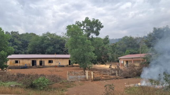 Nach etwa zehn Minuten kam der Motorradjunge zurück. Imke war in der Wartezeit schnell dazu übergegangen, mit unserem Zeigebüchlein (Bilder von Oberschwaben, unserer Hochzeit, unseren Familien, einer Daimler-Niederlassung und Kühen vor dem Bodensee …) alle Frauen der Nachbarschaft um sich zu versammeln. Ich genoss abseits, dass Männer öfter mal zu nichts nutze sind, und schaltete kurz ab. Jetzt aber sollten wir dem Motorradjungen zur Schule folgen. Dort platzten wir passenderweise in die Gesamtlehrerkonferenz (der Direktor und die fünf Lehrer), die nun durch die Dorfältesten und den Vorsitzenden des Elternbeirats erweitert wurde. Auch für uns wurden jetzt zwei Plastikstühle in die Runde gestellt. Erneut Begrüßungspalaver (sehr wichtig) und erneut unsere Geschichte, vorgetragen durch uns selbst. Eigentlich kannte diese Geschichte ja schon jeder, denn sie wurde durch den Chef de Village berichtet, der sie vom Motorradjungen berichtet bekam, der sie vom Ladenbesitzer berichtet bekam.