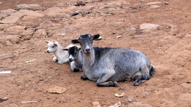 Kauend schaut sie uns nur ganz beiläufig an, zwängt sich an unseren geparkten Rädern vorbei und schreitet uns ignorierend die einsame Straße entlang. Ihr glänzendes rotbraunes Fell schimmert im Sonnenzenit, ihr Gang ist trotz der kurzen Beine würdevoll. Krokodil, Pavian, Waran – nichts kann sie aus ihrer Ziegenruhe bringen. Kein Löwe kann so abgebrüht cool am Straßenrand stehen und keinen Zentimeter weichen, wenn 40-Tonnen-Auflieger mit 80 Stundenkilometern nur handbreit an ihm vorbeidonnern. Wenn sich dann der Staub legt, während die Straße noch bebt, wäre der Löwe geflüchtet. Die westafrikanische Zwergziege steht und kaut, als wäre nichts gewesen. König der Löwen? Ein Märchen! Die Zwergziege? Eine zähe Naturgewalt! Überall, wo wir hinkommen, ist sie schon da. Und wenn wir sie gerade mal nicht sehen, dann steht sie sicher nur wenige Meter von uns entfernt im tiefen Gras. Sie ist resistent gegenüber den meisten Wurmkrankheiten und anderen Parasiten, die Schafe und Rinder hier eher elend aussehen lassen. Sie ist das verbreitetste Nutztier in Westafrika.