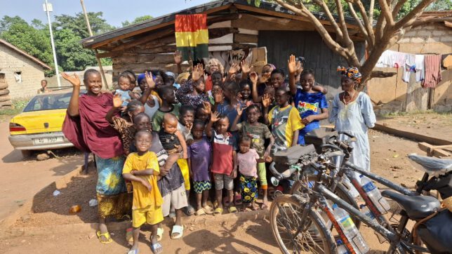 In den nächsten Tagen umgehen wir die gefährliche Schnellstraße Richtung Hauptstadt Conakry, indem wir auf einer 100 Kilometer langen Lateritpiste tief in den Busch fahren. Hier im abgelegenen ländlichen Guinea leben die meisten Menschen ohne Strom und fließendes Wasser in kleinen Ansammlungen von Lehmrundhütten. Die Menschen sind arm, sehr arm. Man sieht es ihnen an. „On est ensemble“ kommt mir immer wieder in den Sinn in den langen Stunden im Sattel. Wenn die Lebensumstände zu hart sind, als dass man sie allein auf sich gestellt bewältigen kann. Wenn nur die Gemeinschaft und die gegenseitige Hilfe einen überleben lassen. Wenn die härteste Anstrengung nicht ausreicht, um sich das Lebensnotwendige zu erarbeiten, wenn man mit weniger als zwei Dollar am Tag die Familie ernähren muss, dann erhält die Gemeinschaft, die in diesem Spruch zum Ausdruck kommt, eine schwere Bedeutung. On est ensemble, man ist gemeinsam – gemeinsam existiert man – gilt im Klassenzimmer, in der Familie, in der Dorfgemeinschaft und in der Gesellschaft.