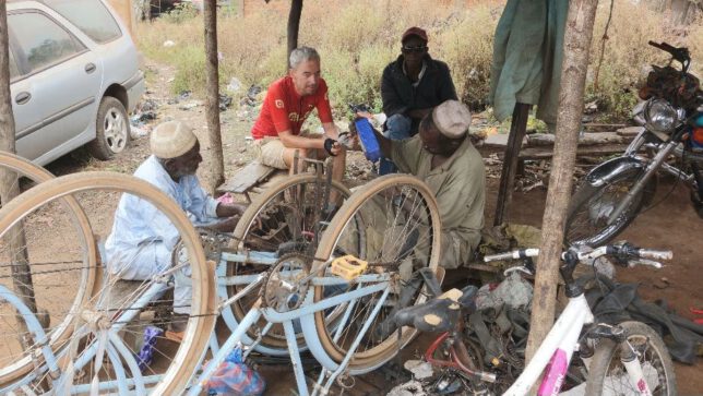 In diesem Fall jedoch verkündete der Ladenbesitzer sofort vor den Umstehenden, als wäre es seine geniale Idee gewesen: Die Weißen sind weit hergekommen, aus Deutschland, mit dem Rad, über 5000 Kilometer, vier Monate. Sie sind jetzt müde, und vielleicht könnten sie ja in der Schule ausruhen. Wir erleben sehr oft, dass unsere Geschichte, unser Familien- und Kilometerstand vom Ersthelfer weiterberichtet wird an die später Dazugekommenen, und jedes Mal hören wir Stolz und Fürsorge gleichermaßen aus solchen Berichten unserer Geschichte. Wir werden so oft zu Zuhörern und Beobachtern unseres eigenen Lebens hier in Afrika. Das ist immer ein sehr schöner und uns wertvoller Moment. Wir sind jetzt allerdings wirklich sehr erschöpft.