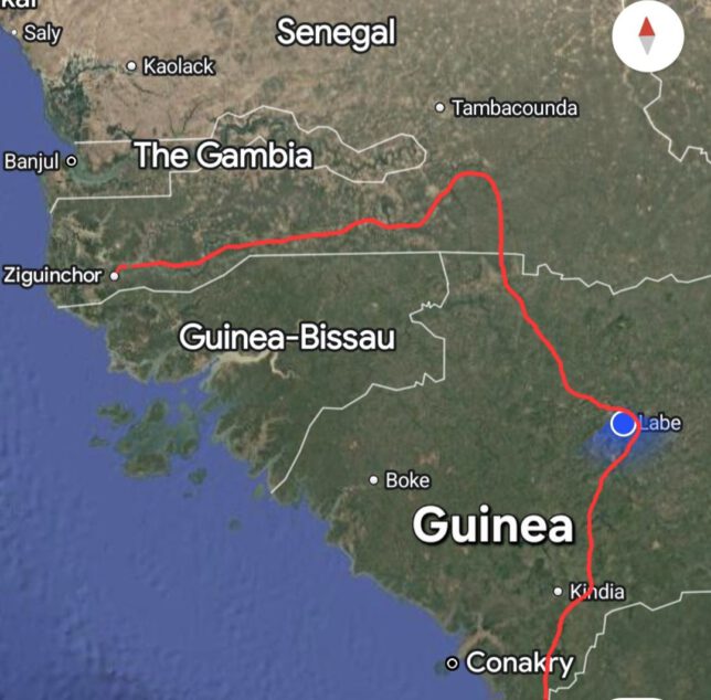 Eigentlich hatten wir den Senegal durchquert und wollten am nächsten Tag in Guinea-Bissau einreisen. Wir waren in Ziguinchor, der südwestlichsten Stadt Senegals, am Ufer des mächtigen Casamance-Stroms. Dieser Fluss fließt in Ost-West-Richtung parallel etwas nördlich zum Grenzverlauf von Guinea-Bissau (dem kleinen Guinea). An seiner breitesten Stelle ist er vier Kilometer breit, und die Gezeiten des Atlantiks sind noch 200 Kilometer flussaufwärts spürbar. Der Casamance schneidet den südlichen Teil Senegals wie einen Streifen vom restlichen Senegal ab. Daher wird dieser Landstrich auch Casamance genannt und hat nach unserem Empfinden eine ganz eigene Stimmung. Lange gab es hier auch gewaltsame Konflikte mit der Zentralregierung, weil sich die Casamance von Senegal unabhängig machen wollte. Wir hatten hier auch den Eindruck, dass unser Versuch, Französisch zu sprechen, nicht so gut ankommt. Oft erhielten wir nur Antworten auf Englisch – vielleicht auch als Protest gegen das restliche französisch sprechende Senegal.
