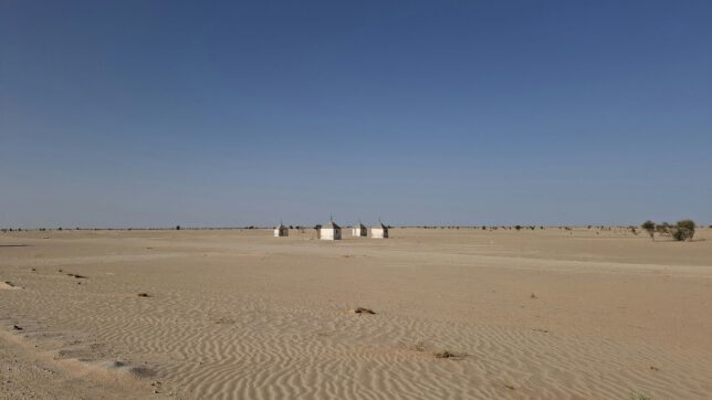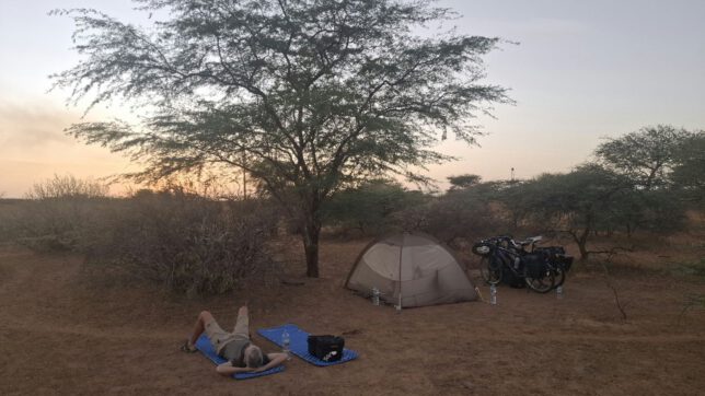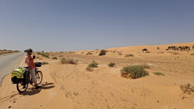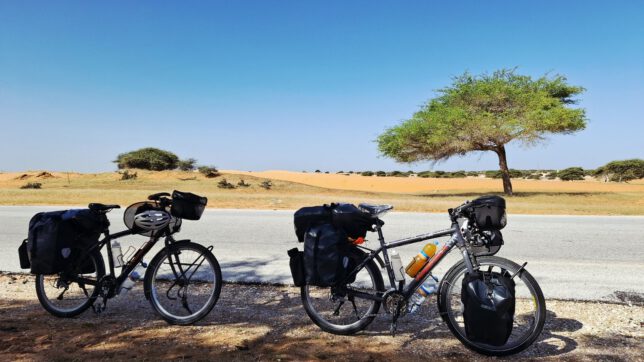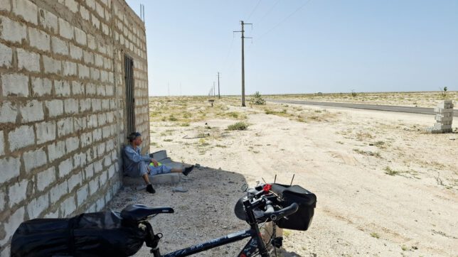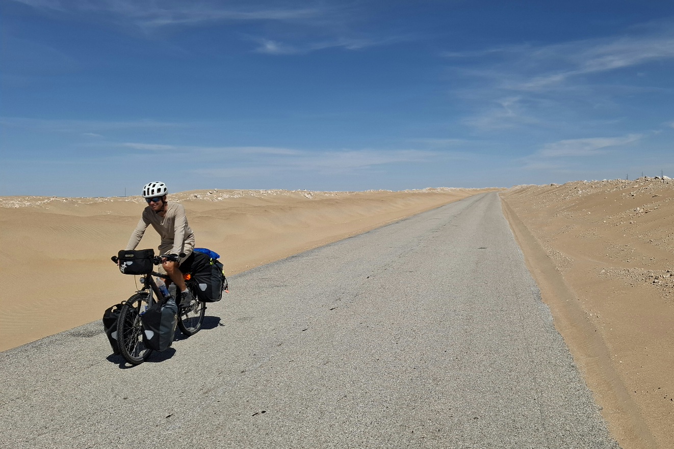 Ganz abgesehen von der psychischen Belastung ist diese Hitze auch körperlich bedrohlich. Immerhin fahren wir bei diesen Temperaturen fünf bis sechs Stunden Rad täglich. Wir sind vorsichtig und das äußert sich in noch mehr Planungsaufwand und noch mehr Kontrolle der Bedingungen. Das trägt aber auch nicht gerade zur mentalen Entspannung bei. Auf den letzten Etappen zeigt uns die Wüste nochmal ihre Kräfte und wir fühlen uns winzig.