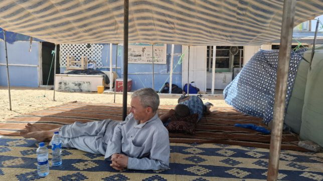 Parallel zum Gespräch denke ich: Natürlich hat er Tränen in den Augen. Auch ich bin traurig, weil seine mit Händen zu greifende Hoffnung und die für uns schwer vorstellbare Anstrengung, die er unternommen hat, in so krassem Gegensatz stehen zu den hoffnungslosen Umständen, in denen er lebt. Er wird nie nach Deutschland kommen können, denke ich. Alle Hoffnung liegt zerstört hier in diesem sechs Quadratmeter großen Hitzeofen offen vor uns. Ich weiß es, er weiß es. Er will es nicht aussprechen, er will lieber von der Hoffnung sprechen. Dass er uns getroffen hat, gibt ihm die Möglichkeit, sich diese Hoffnung noch einmal selbst zu erzählen. Er macht eine lange Pause und hat Tränen in den Augen. Ich sage: „Es ist schwierig.“ Er nickt und schweigt.