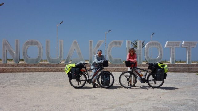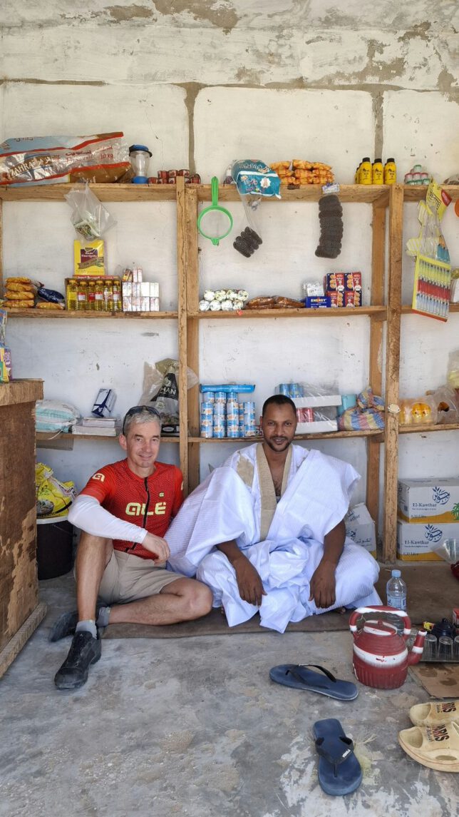 Die Straße durch die Wüste, die jetzt vor uns liegt, wird uns an die Grenzen unserer Leidensfähigkeit bringen. Kaum einen Tag lagen die Temperaturen unter 40 Grad, und wenn wir dachten, dass wir bisher wenig Versorgungsluxus hatten, so wird uns in Mauretanien weniger als die Hälfte von dem erwarten, was bisher war: weniger Menschen, weniger Dörfer, weniger zu kaufen in den wenigen „Läden“. Wir fahren die rund 700 Kilometer erbarmungslose Hitze in weniger als 7 Radtagen. Wir ducken uns durch die Hitze und retten uns von Schatten zu Schatten. Manchmal gibt es über 50 Kilometer keinen. Die Hälfte der 4 Millionen Einwohner Mauretaniens lebt in den beiden Städten Nouakchott und Nouadhibou. Der Rest wohnt enlang der Küste und ganz im Süden entlang der Grenze zum Senegal. Dort steht nach Wochen der baumlosen Wüste für uns auch der erste Baum. Wir machten ein Foto davon, so gerührt waren wir von seinem Anblick.