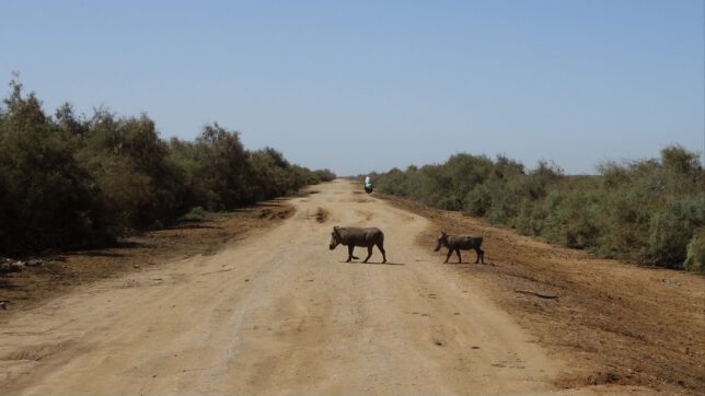 Jetzt stehen wir am Senegal-Fluss. Ein riesiger Strom. Alles ist grün. In den Bäumen kreischen die Vögel. Affen und Warzenschweine rennen vor uns über die Straße. Wir können es noch gar nicht glauben. Gestern waren wir noch tief in der Wüste und plötzlich ist alles vorbei. Mauretanien ist vorbei. Wir empfinden Wehmut. Die Sahara liegt hinter uns. Wir brauchen wahrscheinlich noch etwas Zeit, bis wir das begreifen. Vor uns liegt Westafrika.