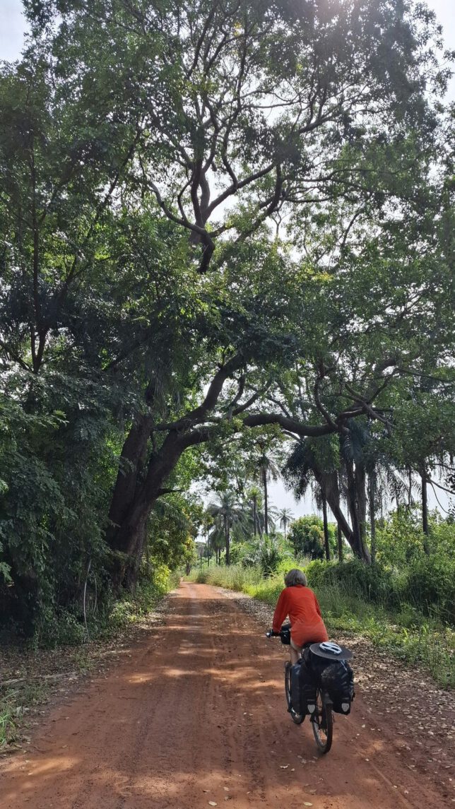Nebenbei fahren wir immerhin durch den Senegal. („Bisher sind wir ja nur fahrradgefahren und jetzt kommt noch etwas obendrauf.“) Wir befinden uns in einer Dauerschleife des angeschalteten Lächelns und der guten Wünsche, des zugerufenen Willkommens und des Austauschs in Bewegung. Am Abend sind unsere Stimmen heiser und wir wundern uns. Aber wir haben natürlich den ganzen Tag geredet. Hundertmal haben wir gewünscht, geantwortet und bedankt.