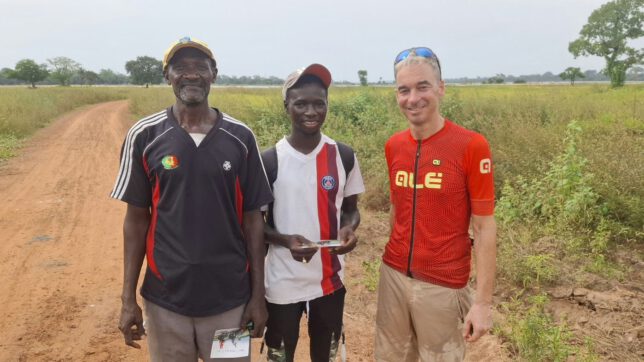 Jetzt im Senegal treten wir auf eine ganz andere Bühne. Das zumindest ist vom ersten Tag an unser Gefühl. Es ist ein schöner Austausch zwischen uns und den Menschen hier. „Bisher sind wir ja nur radgefahren“ ist tatsächlich das bestimmende Gefühl, nachdem wir aus der puristischen Einsamkeit der Wüste herausgetreten sind. Die meiste Zeit des Tages waren wir ja allein in dieser Weite. Dann Anhalten und ein paar Menschenbegegnungen. Ansonsten Radfahren. Nur Radfahren.