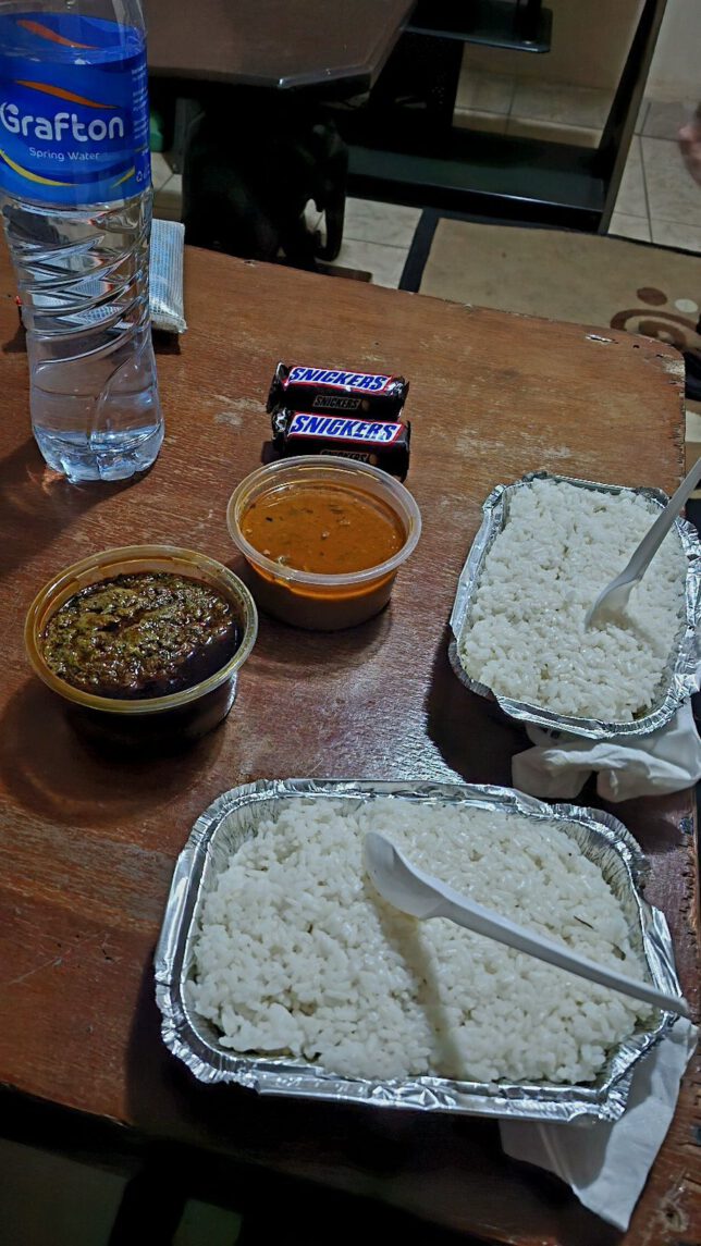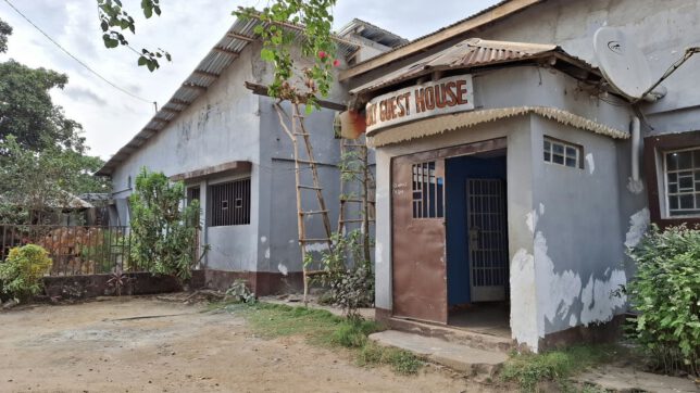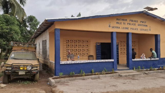 Jetzt war es ohnehin zu spät um nochmal einen Rückzieher zu machen. Erst die Räumlichkeiten anschauen und dann sagen: Ähh, Entschuldigung, das ist uns zu wenig luxuriös hier, wir suchen einen anderen Ort… das wäre eine Beleidigung der Gastfreundschaft gewesen. Keine Option. Also hörte ich mich sagen: „Wir schätzen die Sicherheit bei der Polizei von Sierra Leone und würden sehr gerne hier übernachten, wenn es ihnen nicht zu viel Mühe macht.“ Wie so oft in solchen Situationen blieb uns nur die Flucht nach vorne – ist ja schließlich auch eine Flucht. Wir besiegelten unsere Übernachtung hier, ohne zu wissen was uns wirklich erwartet und verabschiedeten uns, um im Dorf Wasser und Essen zu kaufen.