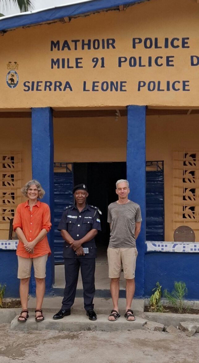 Zuerst kam mir der überhebliche Gedanke, dass das ja primitive und eher wirkungslose Maßnahmen sind. Je länger ich an diesem Nachmittag aber auf der Veranda der Polizeistation saß, desto mehr schämte ich mich über diesen ersten Gedanken. Wir durften beobachten mit welcher entschiedenen und zugleich freundlichen Autorität hier der Chef eine Instanz des guten Zusammenlebens verkörperte. Der staubige Parkplatz der Polizeistation wurde vor unseren Augen zum Ort, an dem Gerechtigkeit gesucht, an dem Versöhnung wiederhergestellt, an dem soziale Verantwortung eingefordert wurde. Wir spürten den Respekt, der dem Polizeichef von den Leuten aus dem Dorf engegengebracht wurde. Vielleicht hatte der Dorfchef ja gar keine Witze gemacht und wir sahen den besten Polizisten Sierra Leones bei seiner Arbeit.