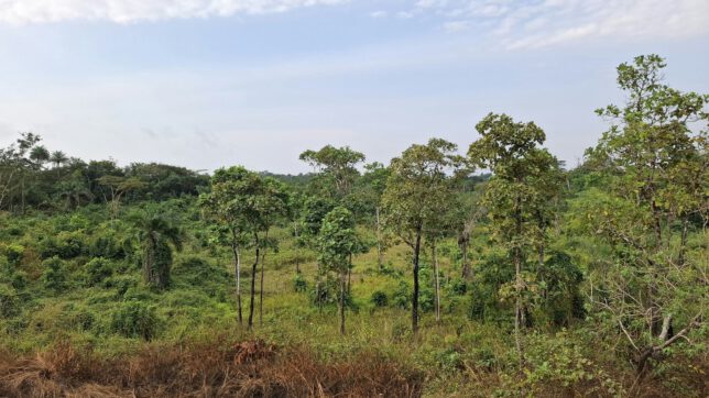 Imke hatte uns einen Plan gemacht. Fünf Tage für die rund 400 Kilometer bis zur liberianischen Grenze. Davon immerhin vier Übernachtungen, von denen wir annehmen konnten, dass es „offizielle“ Zimmer mit Bett waren. Alle eher sehr einfach, manche ohne Strom und fließendes Wasser. Aber das waren aus unserer Perspektive Luxusübernachtungen. Die von uns so genannten „inoffiziellen“ Übernachtungen oder „Joker“ waren die anstrengenden. Diese gab es eigentlich gar nicht. Wir würden am Ende des Tages einfach fragen müssen, wo man hier schlafen könnte. Immer eine Überraschung, nicht immer eine positive. Anstrengend war das zusätzlich, denn nach dem anspruchsvollen Radtag hieß das immer, sich auf eine teils lange Phase der Findung einzulassen. Im schlechten Fall müssen wir dann weiterfahren und im nächsten Dorf fragen. Die Sorge ist dann immer, dass wir vor der Dämmerung keinen Platz zum Schlafen finden. Spätestens zur Dämmerung versuchen wir unter dem Moskitonetz zu sein, denn dann werden die Malariamücken aktiv. Wir befanden uns unterdessen im Malariagebiet – dieses würden wir jetzt für Monate auch nicht mehr verlassen. Obwohl es gerade nicht Regenzeit war, zu der es besonders viel Malariafälle gibt, hatte es in den letzten Tagen ungewöhnlich viel geregnet und die Mücken waren aktiver als sie es zu dieser Jahreszeit hätten eigentlich sein dürfen. Die Einheimischen beklagten immer wieder die Eskapaden des Wetters und brachten es mit dem Klimawandel in Verbindung.