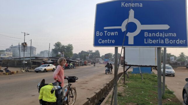 Am 26. Dezember in der Morgendämmerung stiegen wir auf unsere bepackten Räder. Zwei Wochen hatten wir Pause gemacht in Freetown. Wobei das Wort „Pause“ hier eigentlich unpassend ist. In diesen zwei Wochen hatten wir mit erheblichem Aufwand drei Visa für die kommenden Länder erjagt und Imke war krank geworden, wir waren eine halbe Nacht lang in einem unerfreulichen Krankenhaus und danach lag Imke mehrere Tage krank und geschwächt im Bett. Über die Weihnachtsfeiertage konnten wir die Ruhe in Kais altem Farmhaus genießen und jetzt fühlten wir uns wieder bereit für die Straße.