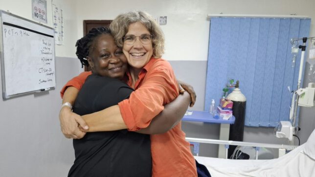 Die ganze Fahrt zurück nach Freetown wurde Imke abwechselnd von Brechanfällen geschüttelt und sank dann wieder komatös in sich zusammen. Wir fuhren durch einen Nebel der Tropennacht, der uns oft weniger als fünf Meter Sicht ließ. Es war eine Horrorfahrt. Im Morgengrauen kamen wir in Freetown an. Die von Imke so gehasste Stadt ihrer ersten Krankheitsepisode. Alles war wieder auf Anfang und es musste sich für sie wie eine fürchterliche Wiederholung anfühlen. Tine, eine Freundin, die Jahrzehnte Erfahrung bei Ärzte ohne Grenzen hat, empfahl mir in der Nacht ein kleines Krankenhaus, mit dem ihre Organisation zusammenarbeitete. Dort nahmen sie Imke um 9 Uhr morgens auf. Sechs Tage blieb sie dort und wurde aufgrund einer Lungenentzündung behandelt.