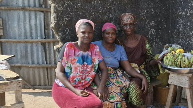 Meine Bananenfrau und die Tochter von Samuel, der seit seinem Gehirnschlag jeden Tag vor der Bauruine auf dem Autoreifen sitzt. (rechts und links)